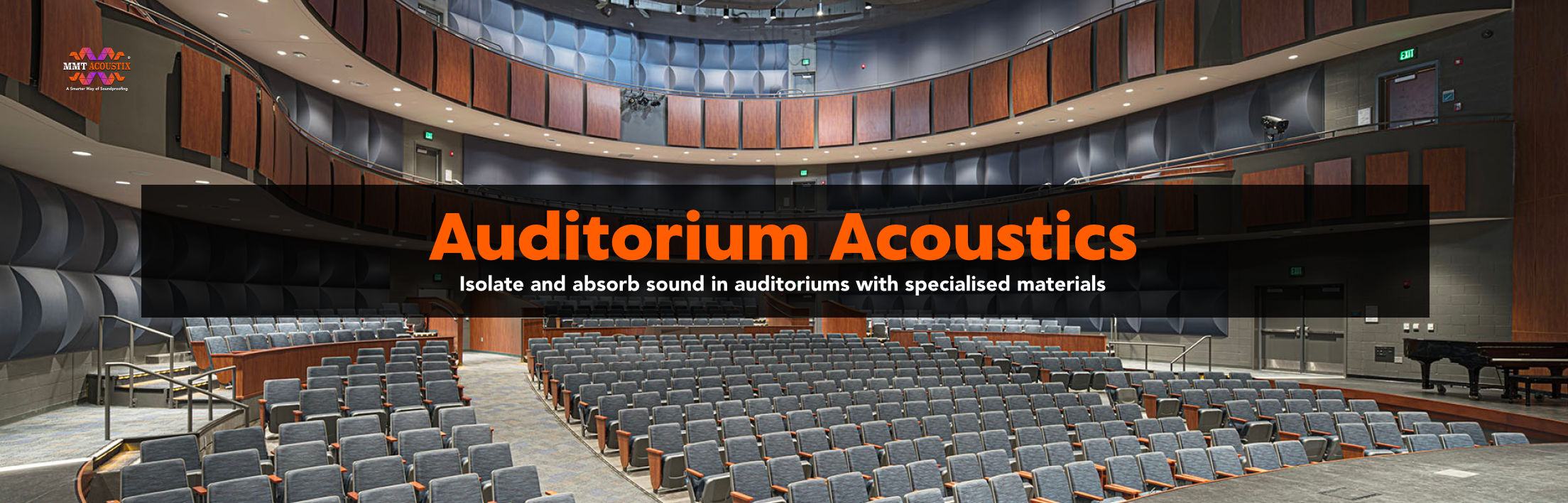 MMT Acoustix® soundproofing products are majorly used to enhance the sound quality and improve acoustic in an auditorium. Products like SoundAxe wooden acoustic panels, Acoustic foam panels, Sound Absorbing: Sound Insulation Pads and Sound Barriers: MLV are used for soundproofing an auditorium.