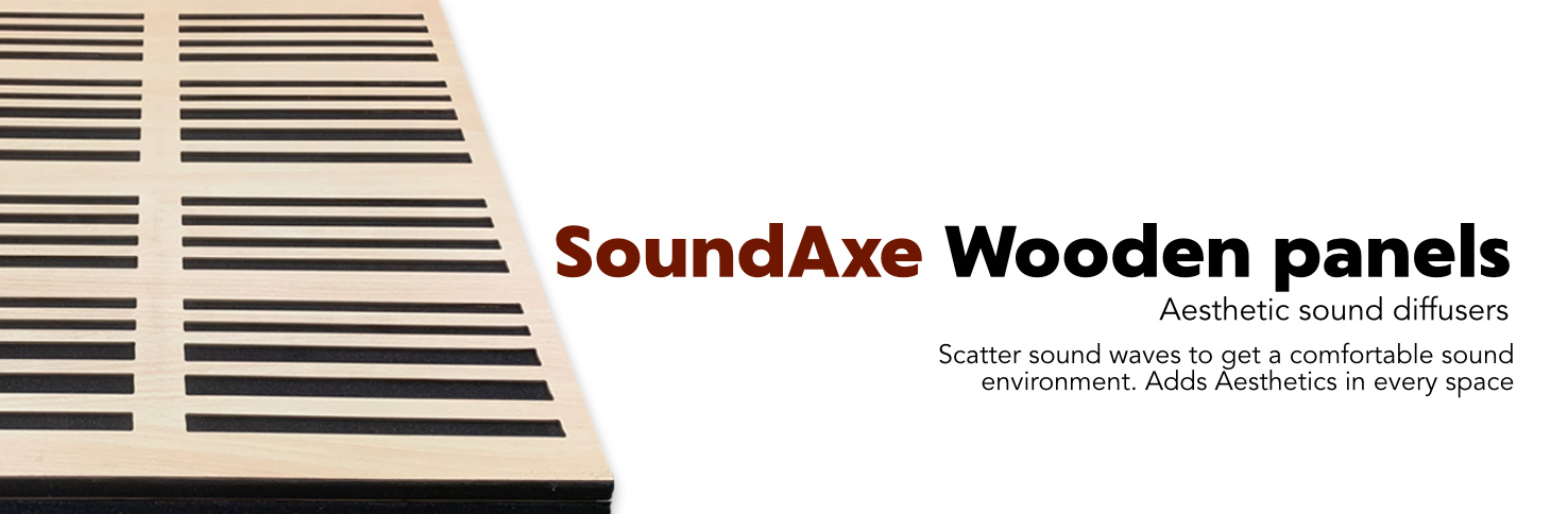 Introducing easy to install SoundAxe® wooden acoustic diffusers. The panels is sized 595x595x25mm which consist of a 3mm high density wooden top and 22mm sound absorbing acoustic foam. The combination of grooves on the wood diffuses the sound and the hollow acoustic foam part absorbs the sound.